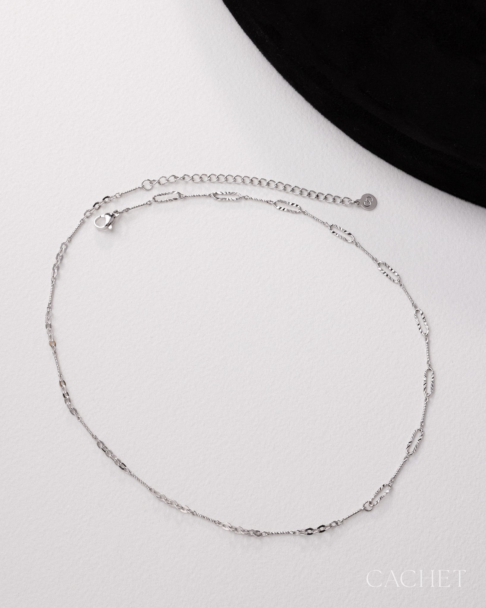 Like bonds that hold through time, the necklace "Tethered" embraces the collar in mismatched texture, in a striking harmony of strength and subtle contrast.