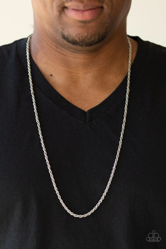 Featuring a high-sheen finish, a glistening strand of silver rope chain drapes across the chest for a casual shine. Features an adjustable clasp closure.