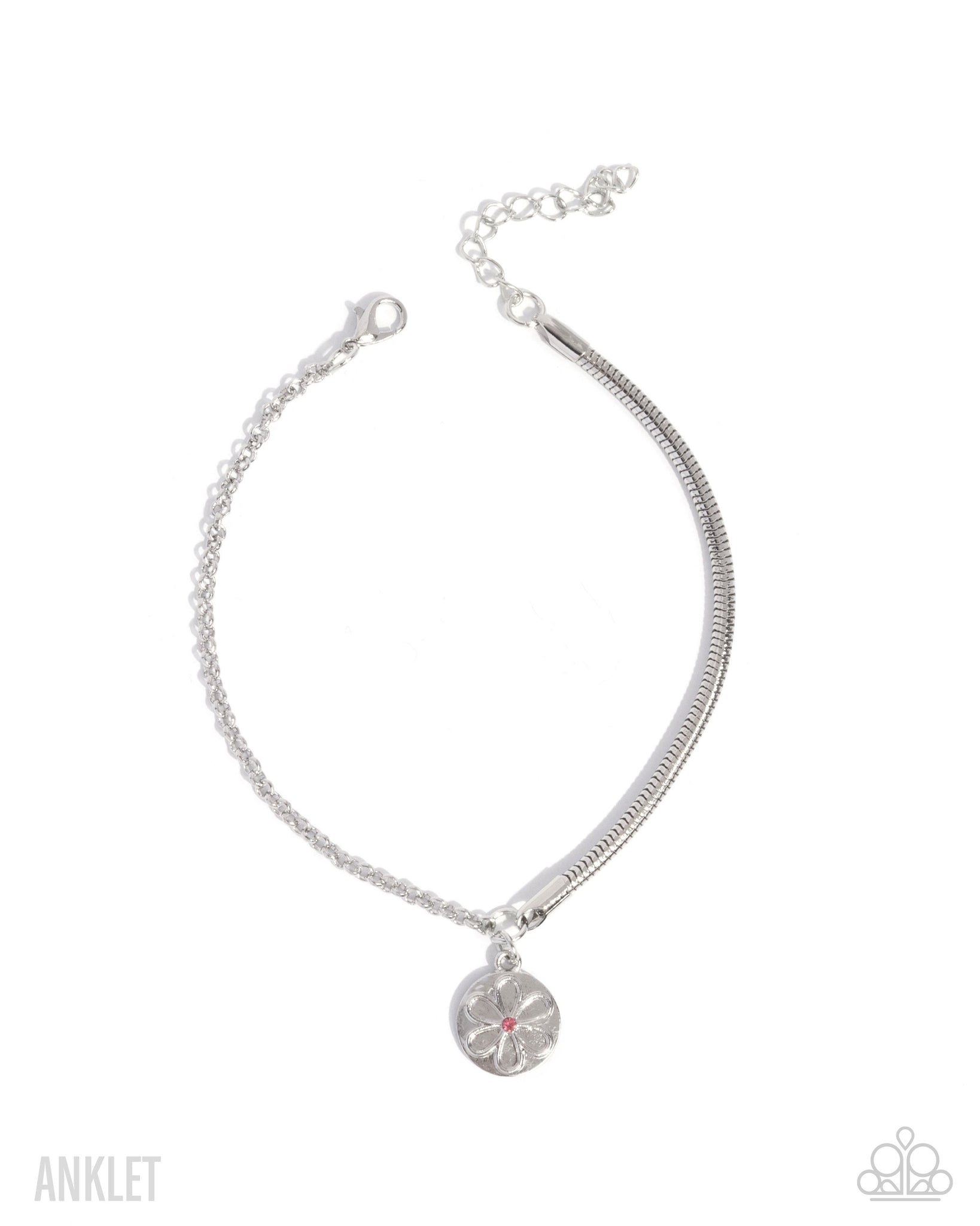 A cable chain strand collides with a singular snake chain to create an abstract blend of grit and glitz. Featuring a rose dainty rhinestone, a floral-embossed silver disc sways at the center of the contrasting design for a balancing blooming finish. Features an adjustable clasp closure.